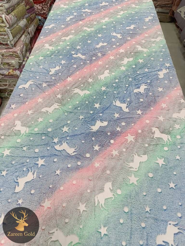 قابلیت درخشش در تاریکی: پتو شبنما با جذب نور محیط در طول روز یا هنگام روشنایی، در تاریکی بهصورت ملایم میدرخشد و جلوهای زیبا و آرامشبخش ایجاد میکند.